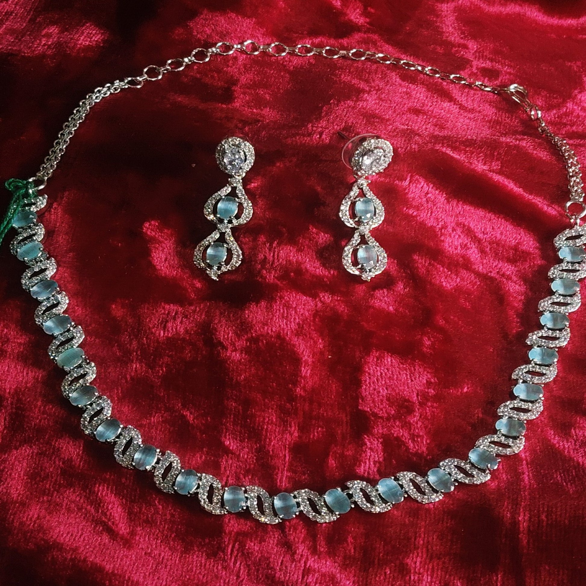 Oceanic Wave Design: Features a graceful, continuous wave-like pattern where bright, oval Aqua Blue stones are linked by shimmering clear AD pave, creating a refreshing, fluid look. 🌊💙