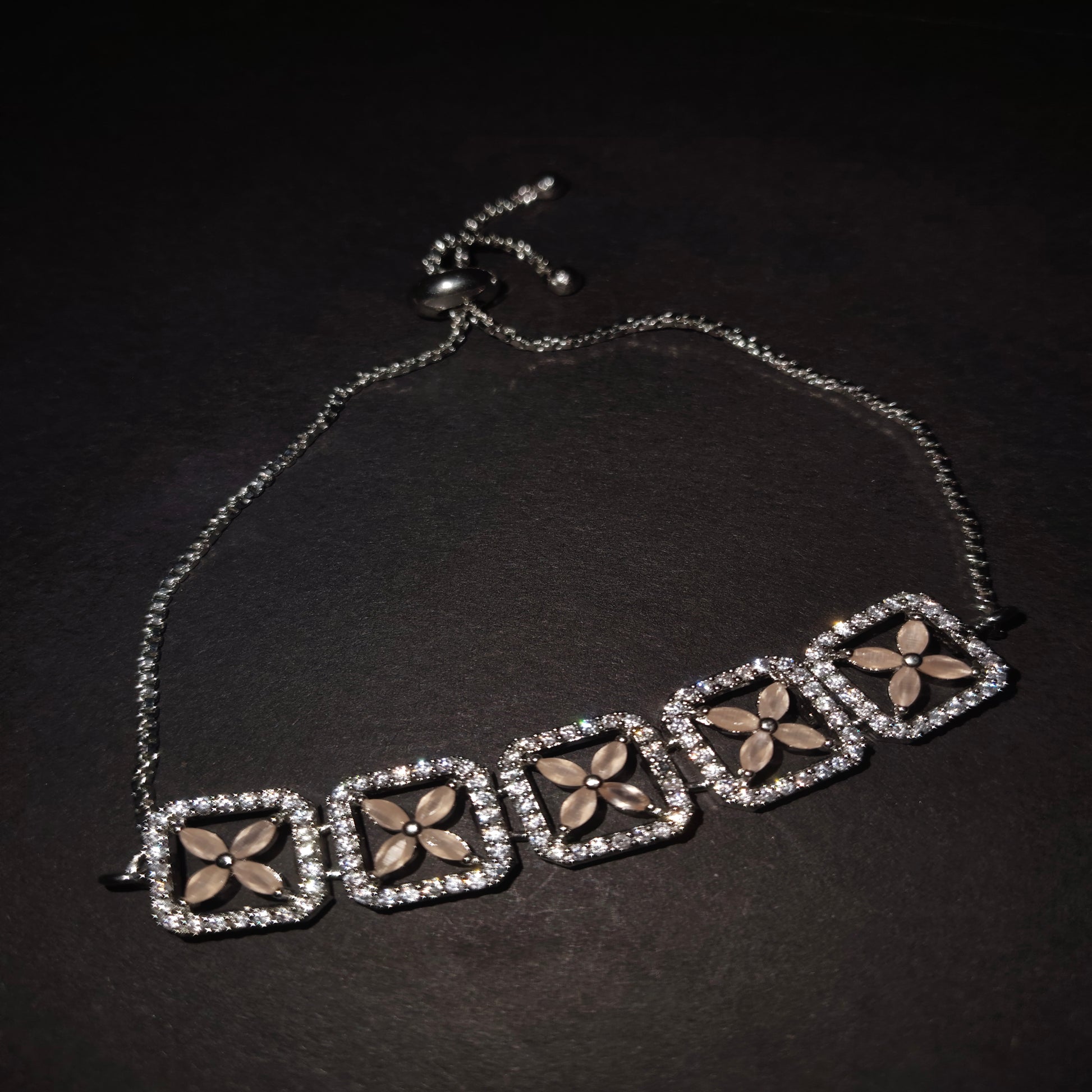 Luxe Materials: Crafted from polished silver with brilliant cubic zirconia and a delicate rose quartz-like centerpiece, offering a soft, sophisticated look. 🌸💎