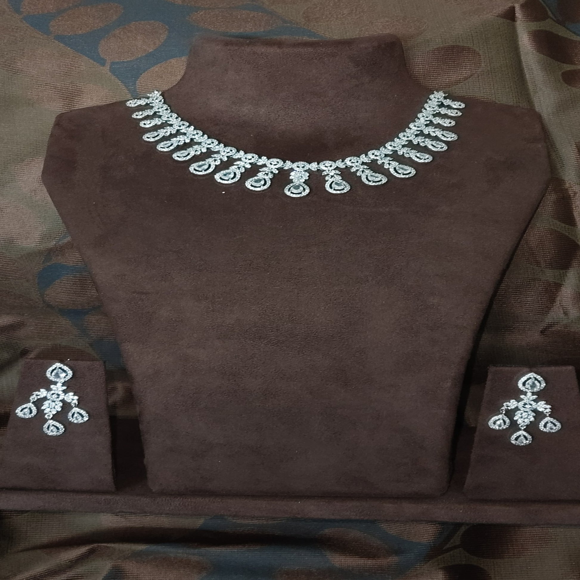 Diamond Teardrop Cascade: A spectacular, dense fringe of perfectly matched clear AD teardrop stones creates a dazzling, fluid cascade along the neckline. 💧✨