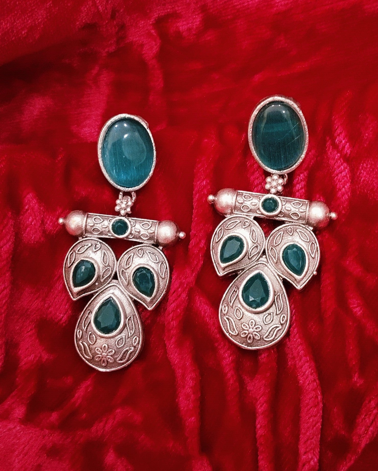 💎 Teardrop Teal Stones – Deep teal-colored stones add rich contrast to the oxidized silver base.