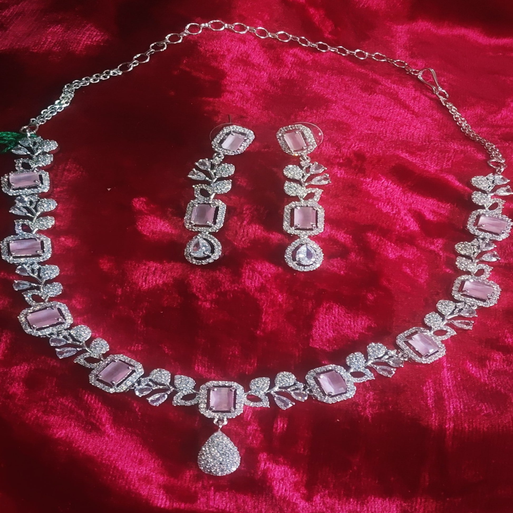 Regal Pink Diamond Centers: Features a luxurious line of bold, rectangle-cut pink (Diamond-look) stones, each meticulously framed by sparkling clear AD clusters for a true heirloom aesthetic. 💖👑