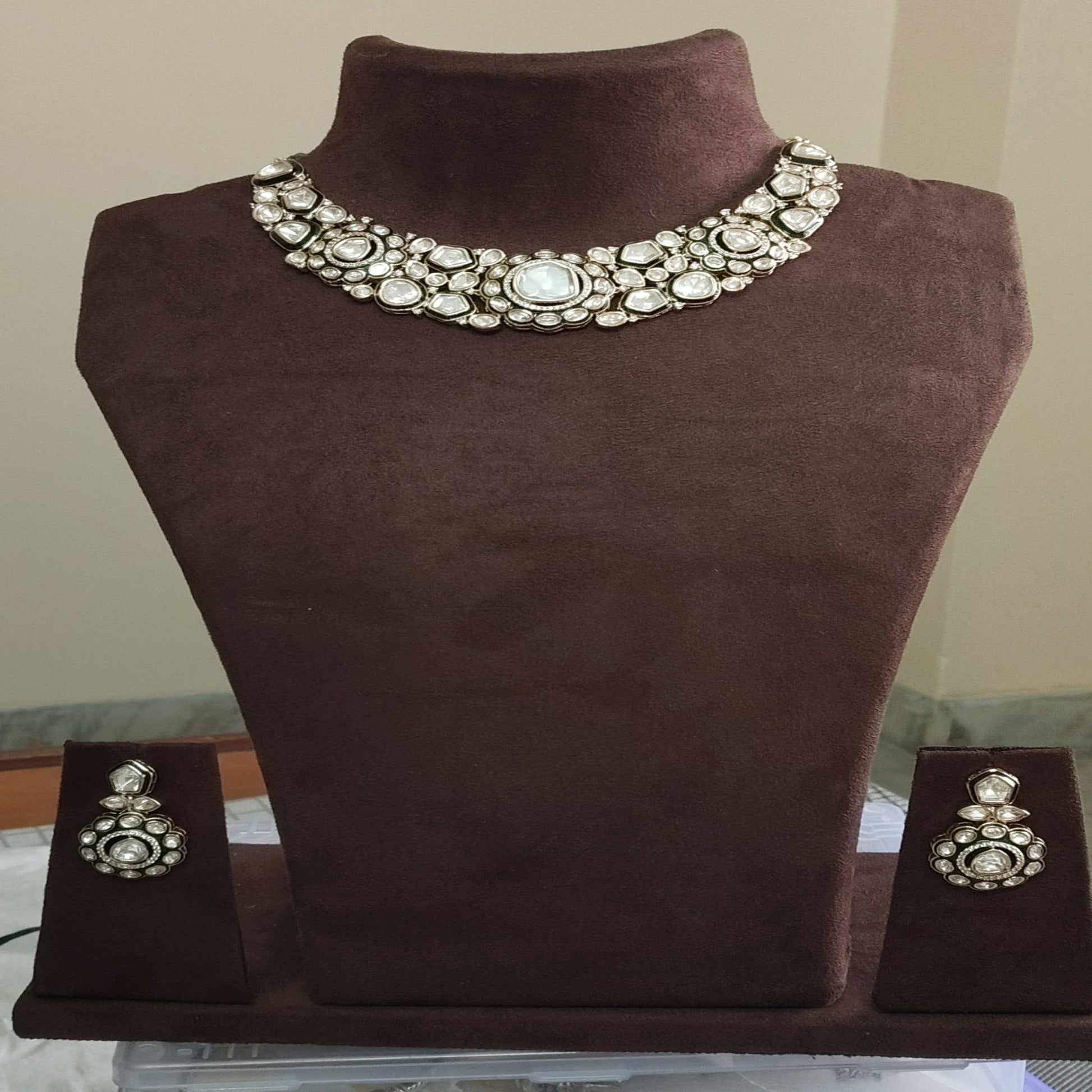 Detail: Features large, round and oval Polki clusters, with a prominent circular central element. The craftsmanship is intricate, suggesting an antique, bespoke look.