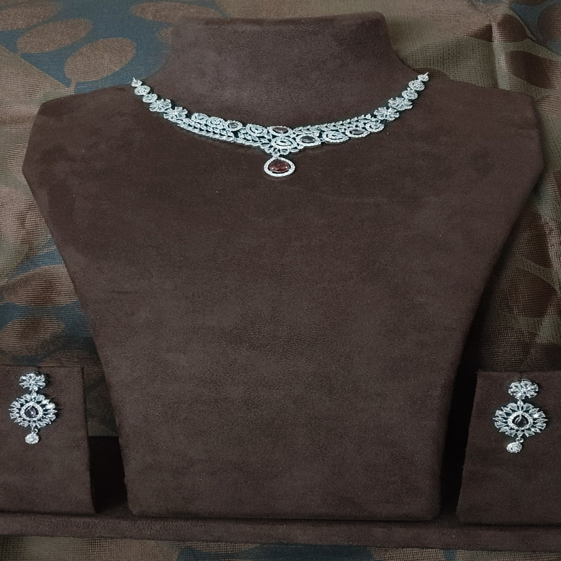 Diamond Halo Effect: The central red stone is enhanced by a shimmering clear AD halo, maximizing its visual size and contrast against the intricate pave work of the collar. 💎